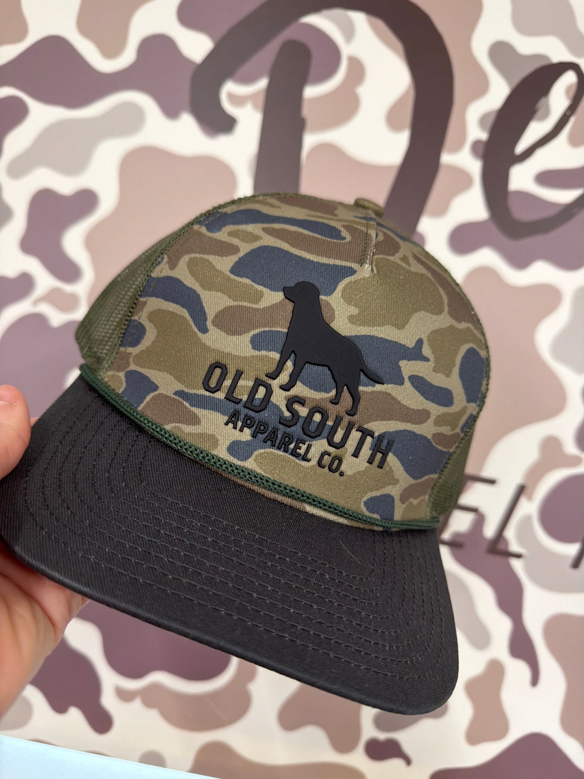 Old South Dog Outline With Thicket Camo - Trucker Hat - Thicket Camo